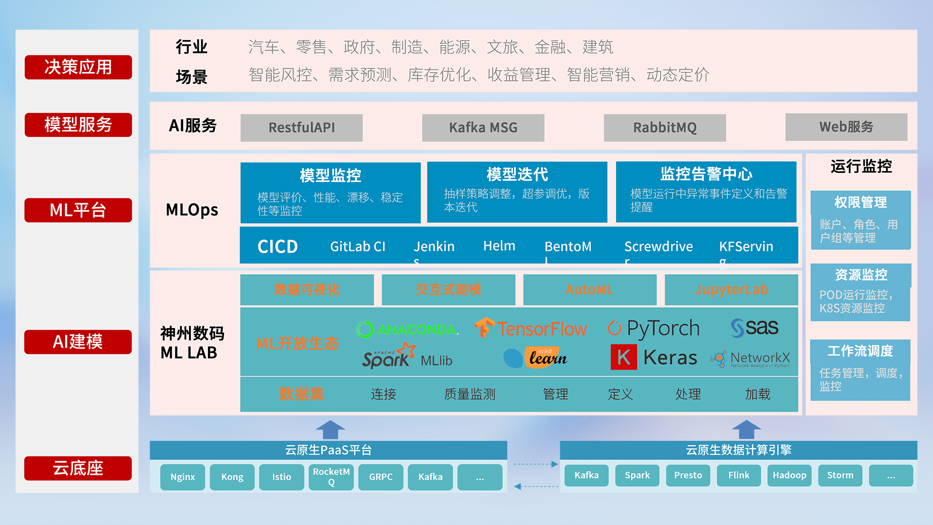 数据+模型双引擎驱动,,面向智能服务场景,,,,快速灵活利用AI技术,,,支持业务决策,,助力企业智能化转型破局。。